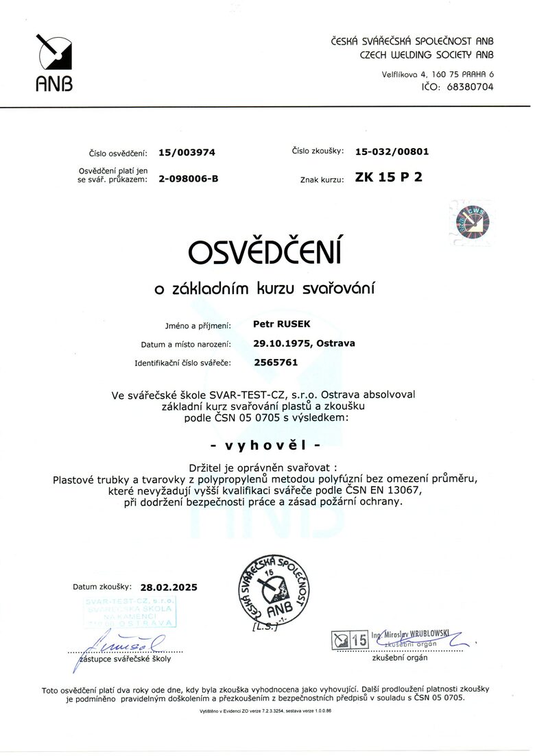 svářečské kurzy na svařování kovů a dva na svařování plastů.